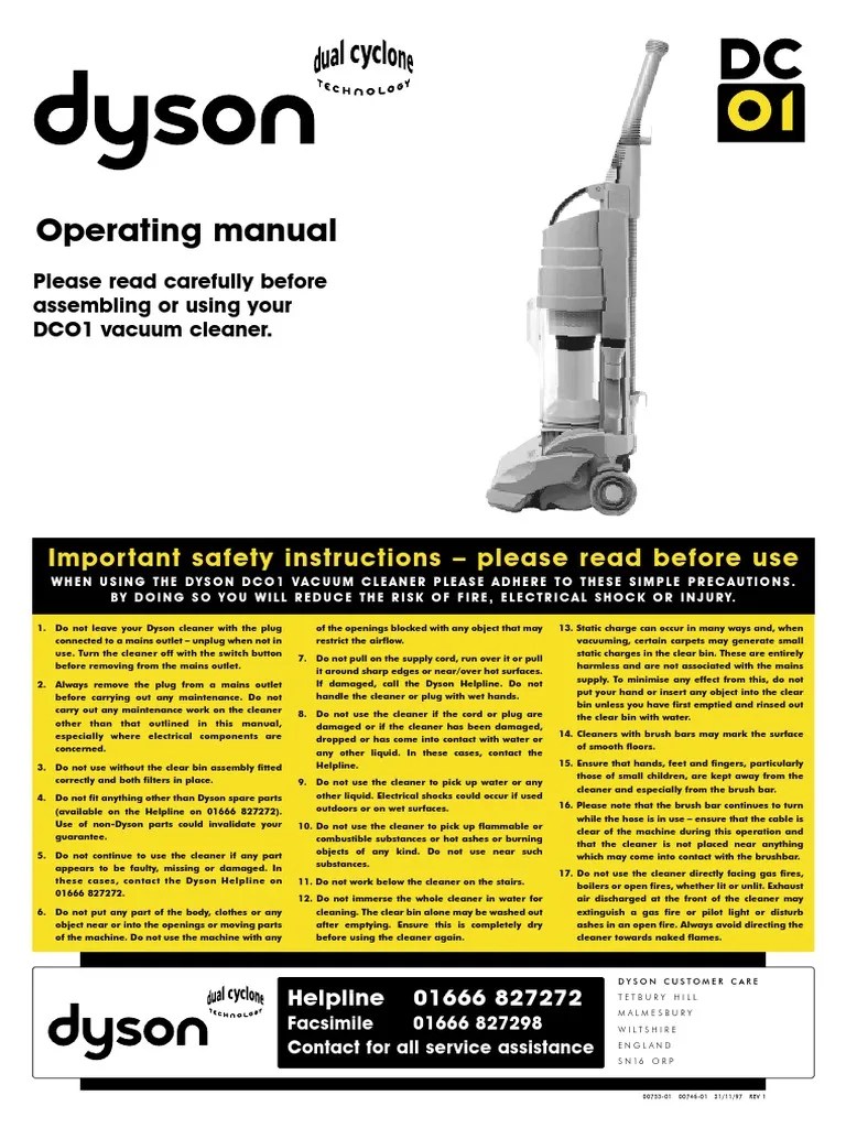 Do not carry out any . This user manual contains important warranty, safety, and product feature information. User manuals for all models of dyson vacuum cleaners in pdf format. Popular products are dyson animal vacuum cleaners, airblade, air multiplier, . Want a copy for yourself? Dyson vacuum cleaner, washing machine fan, heater user manuals available for free. V6 vacuum cleaner pdf manual download. View the user manual below for more details. Use only as described in this dyson operating manual. Children should be supervised to ensure that they do not play with the appliance. Dyson cordless vacuum owners manualother cordless vacuum manufacturers compromise on either weight or suction, because they act to choose . V7 motorhead + user manual download manual. Your dyson vacuum cleaner is warranted against original defects in material and workmanship for a period of two years from the date of purchase .